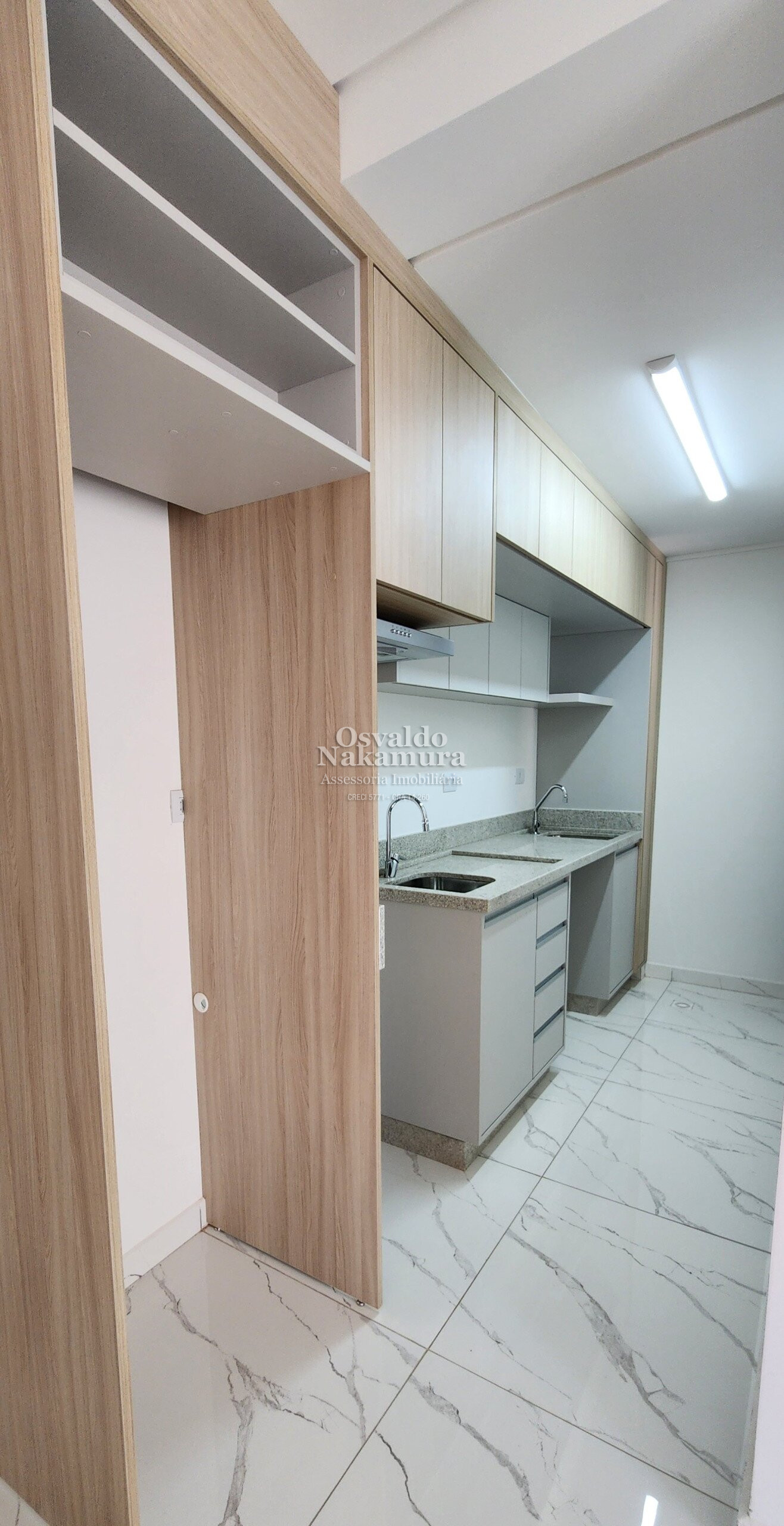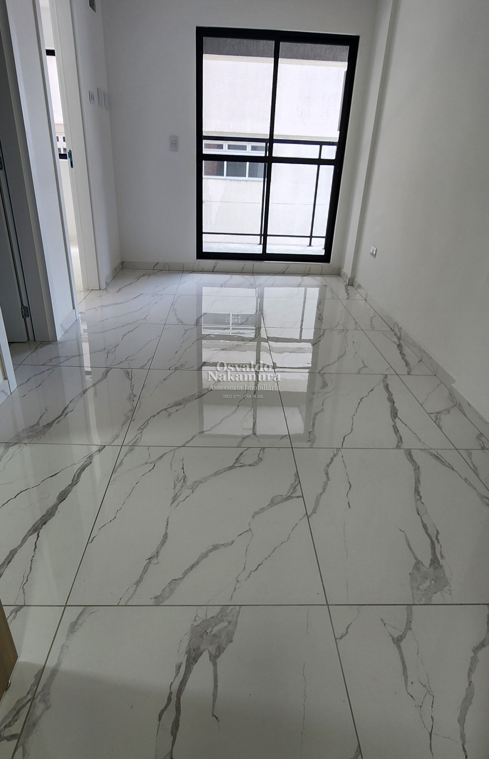 1 dormitório, sala com sacada e churrasqueira, cozinha, banheiro social. 01 garagem descoberta.