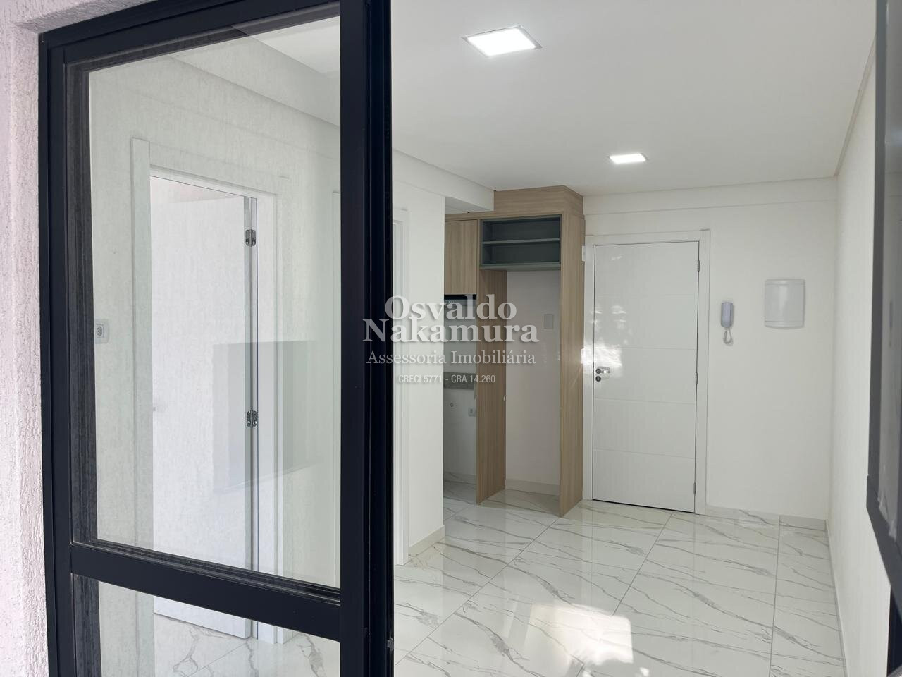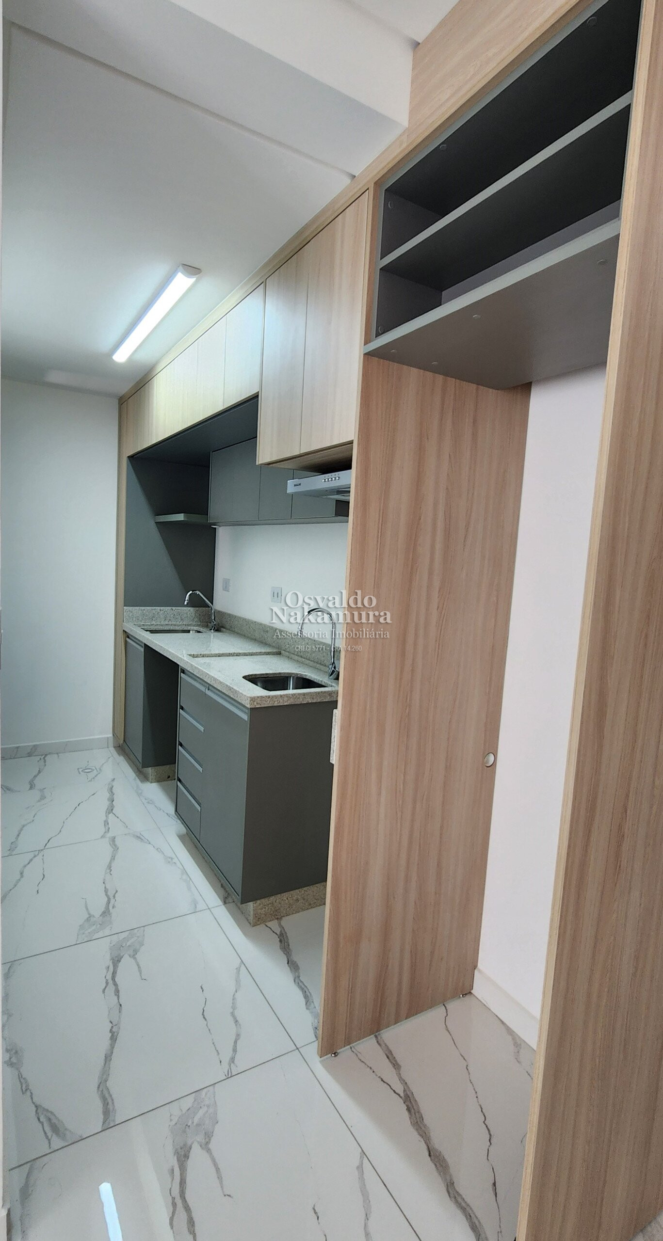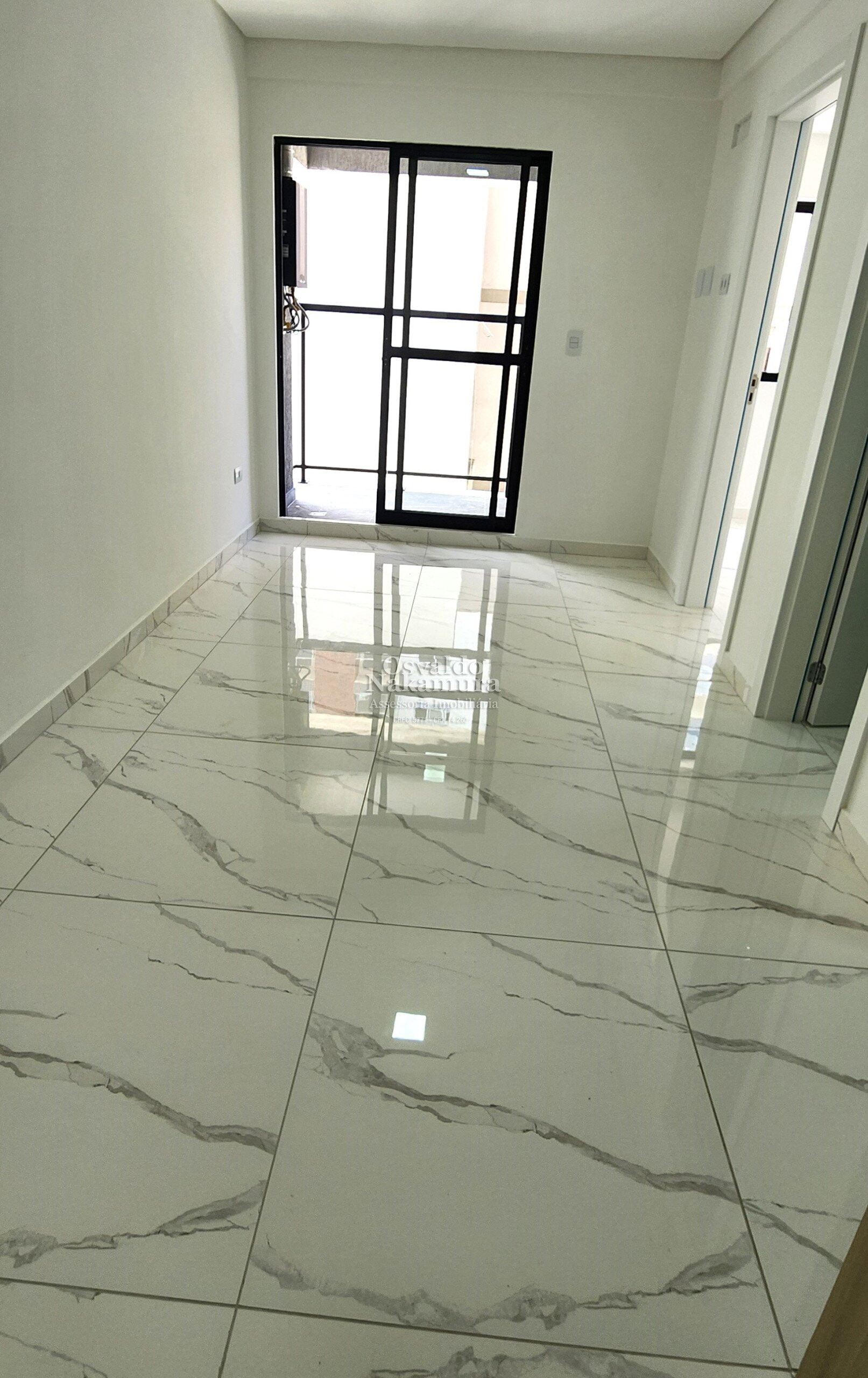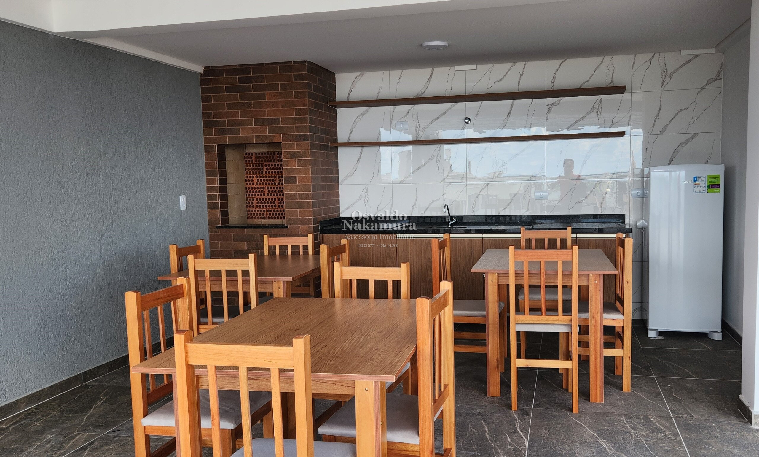 1 dormitório, sala com sacada e churrasqueira, cozinha, banheiro social.
