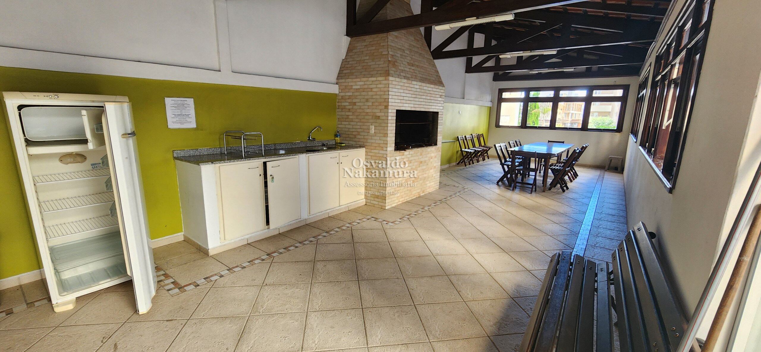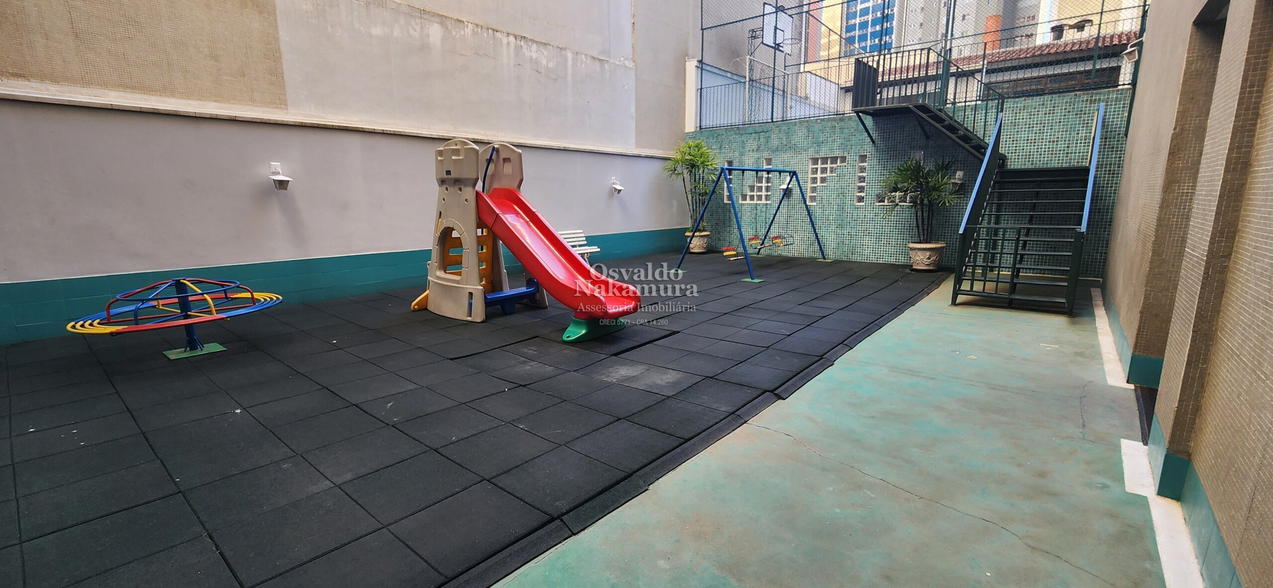 Salão de festas, churrasqueira coletiva, play ground, quadra e portaria 24 horas.